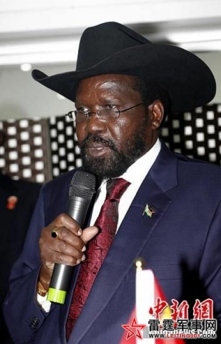 4月24日,中国外交部副部长张志军与南苏丹总统萨尔瓦·基尔一同在北京出席南苏丹驻华使馆开馆仪式。图为南苏丹总统萨尔瓦·基尔致辞。