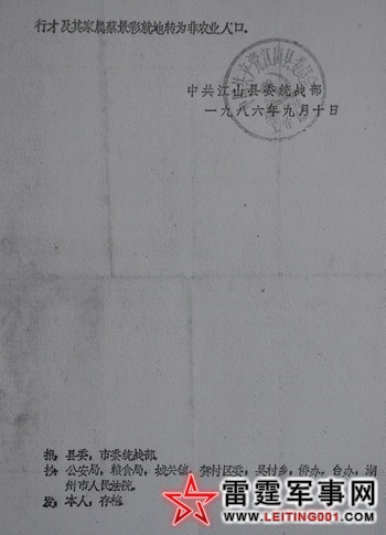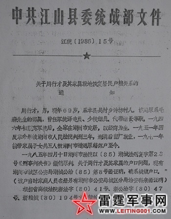 中共江山县委统战部对周行才的处理文件