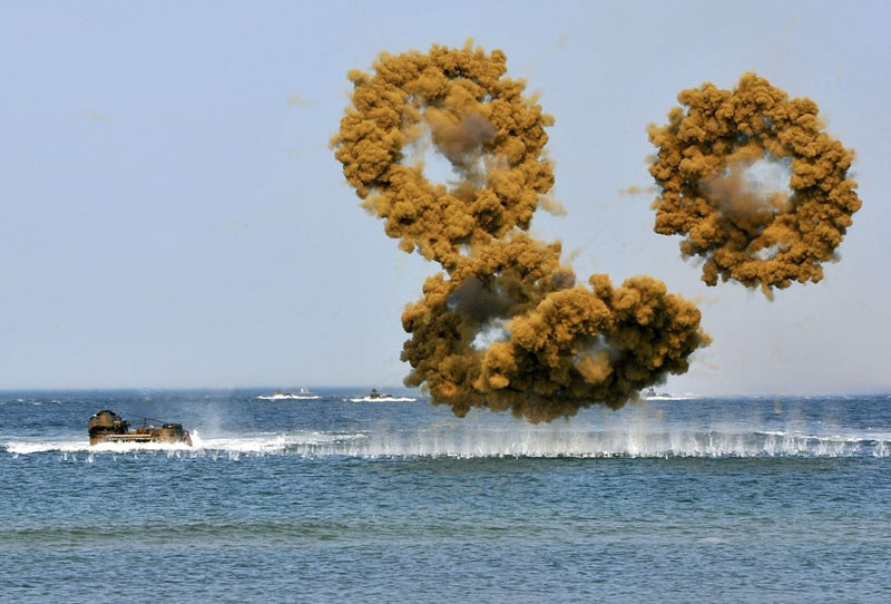 美韩军演场景很炫弹幕冲天